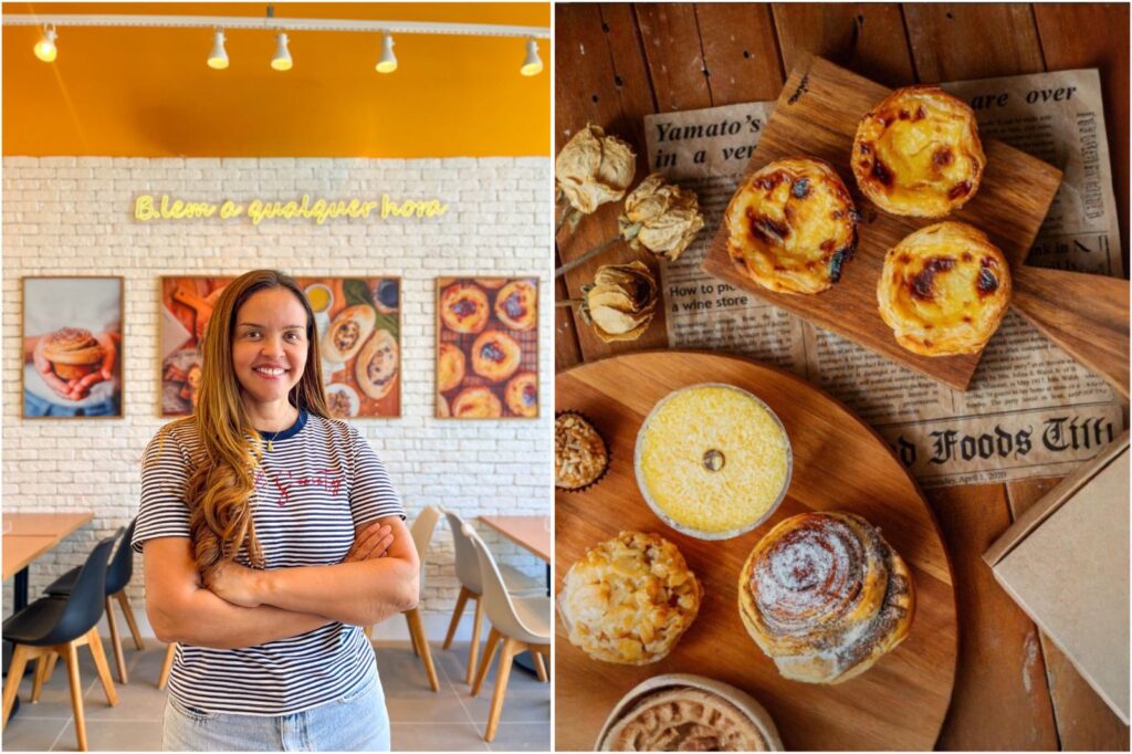 Ellen Alcantara (acima) à frente da primeira loja em Alagoas da franquia de doces e pães artesanais portugueses B.LEM: nova opção de pausa no polo de saúde no bairro do Farol